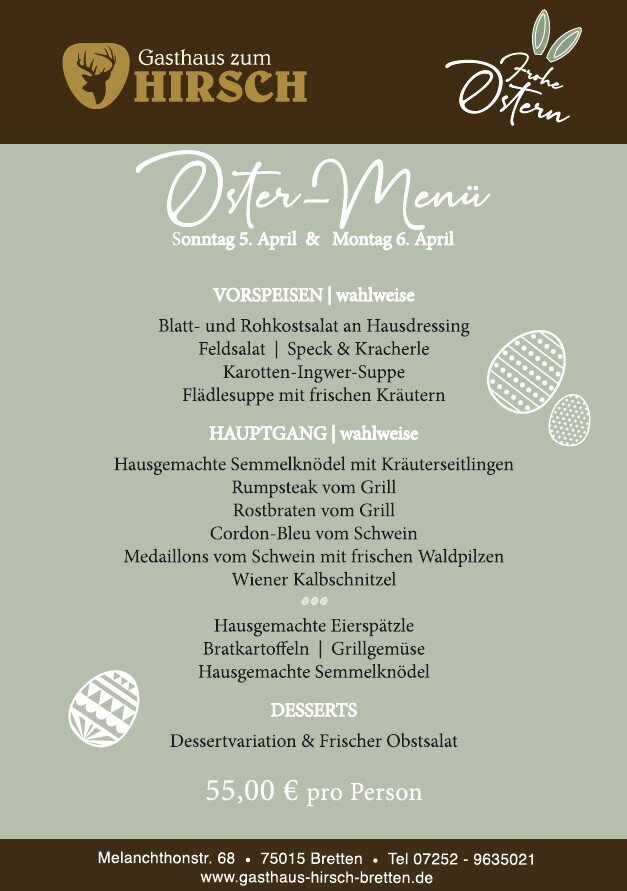Gasthaus zum HIRSCH in Bretten - wir werden Sie beGEISTern!